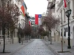 Barrio París-Londres is a barrio located in Santiago, Chile. The neighborhood intersects at Calle Londres and Calle París, located behind the San Francisco Church, in its former orchard. Barrio París-Londres features shops, hostels, hotels and cobble stone streets with renovated mansions, reminiscent of the Latin Quarter in Paris, France. The barrio was developed in 1923 by a group of architects, and consists of only two streets. The building at Calle Londres 38/40 is a former jail and torture facility, used during the Pinochet regime. Tiles in front of the building depict the names of former political prisoners who were held there.[1]