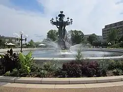 The Fountain of Light and Water,[2] commonly called the Bartholdi Fountain, was created for the Centennial Exposition in Philadelphia in 1876, which celebrated the 100th birthday of the adoption of the Declaration of Independence. It was designed by French sculptor Frédéric Auguste Bartholdi, and it was cast by the Durenne foundry in France, which had won awards for its cast-iron fountains at earlier international expositions in 1862, 1867 and 1873.[3] Bartholdi offered the fountain to the Exposition for free; he intended to sell it afterwards, and to sell others of the same design to other cities. The fountains stood at the center of the esplanade, near the main entrance to the exposition.