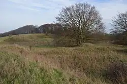 This former gravel pit has been partially filled in to become flower-rich chalk grassland. Plants include knotted hedge-parsley, common poppy and great pignut. Mature beech trees provide a habitat for the white helleborine orchid.[1]