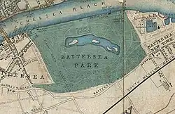 Battersea Park is a 200-acre (83-hectare) green space at Battersea in the London Borough of Wandsworth in London. It is situated on the south bank of the River Thames opposite Chelsea and was opened in 1858.[1]