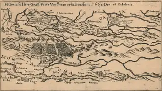 The victory of the Christian army was overshadowed by later events, as the supreme commander of the military frontier, general Herbart Auersperg accused Zrinski of attacking the Ottomans without the previous agreement with him. Ultimately, Zrinski was forced to hand over all plunder and high ranking prisoners to him.[4] The complete victory over the army from the Bosnian Eyalet marked the end of further Ottoman advance into Gacka, and prevented continuous future invasions from Bosnia into Croatian territory. The victory was celebrated abroad in Germany and Italy.[3]