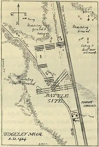 ![]() Plan of the battle of Hedgeley Moor (Battles and Battlefields in England, 1896) | |||||||