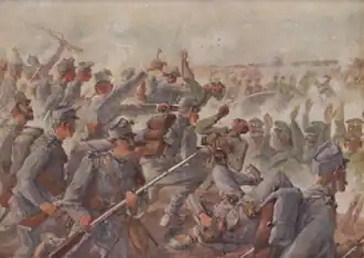 ![]() Austrian infantry storm Russian trenches in the battle of Komarów (C. Pippich) | |||||||