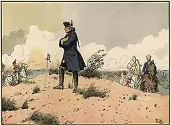 Staff losses were significant. Frederick lost eight regimental colonels.[63] Of his senior command, Seydlitz was wounded and had to relinquish command to Platen, nowhere near his equal in energy and nerve; Wedel was wounded so badly he never fought again; Georg Ludwig von Puttkamer, commander of the Puttkamer Hussars, lay among the dead.[65][66] Friedrich Wilhelm von Steuben, later the inspector general and major general of the Continental Army during the American Revolutionary War,[67] was wounded at the battle.[68] Ewald Christian von Kleist, the famous poet of the Prussian army, was badly injured in the latter moments of the assault on the Walkeberge. By the time he was injured, Major Kleist was the highest-ranking officer in his regiment.[69][70] Generalleutnant August Friedrich von Itzenplitz died of his wounds on 5 September, Prince Charles Anton August von Holstein-Beck on 12 September, and Finck's brigade commander, Generalmajor George Ernst von Klitzing, on 28 October in Stettin.[66] Prussia was at its last gasp and Frederick despaired of preserving much of his remaining kingdom for his heir.[58]