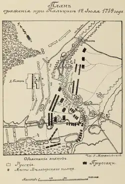 Monitoring this from afar, and dissatisfied with Dohna's timidity in bringing Saltykov to battle, Frederick sent Carl Heinrich von Wedel to take command.[9] Wedel arrived on 20 July and established a blocking position at Züllichau. This would prevent the Russians from entering Prussian territory and reaching the Oder. He wanted to attack the Russians at dawn the next day, but could not find an appropriately weak location in the Russian defenses.[8]
