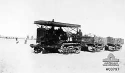 As there was no water in the Ras en Naqb area, it was necessary to return to water at the Beersheba wells, which had been augmented by thunderstorms two or three days before the town was captured.[58][79] Although the wells in Beersheba had not been seriously damaged, the pumping engines could not be used and had to be replaced. New pumps were carried in by caterpillar tractors, while the pumping plant at Asluj was dismantled and brought in to Beersheba on 3 November. Several wells were found in gardens on 3 and 4 November, and although the water left after the thunderstorms and the wadies was soon exhausted, by 6 November 390,000 gallons a day were being produced, equaling demand.[85][86]This was supplemented by 100 motor lorries carrying full 1,800 litres (480 US gal) water tanks that shuttled between Beersheba and Karm 26 kilometres (16 mi) away.[87]