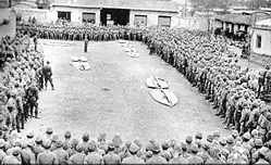 In what was described as "one of the war's most skillful maneuvers," the Chinese managed to extricate some 200,000-300,000 troops in 40 divisions from the Japanese encirclement, moving quickly at night and hiding in wheat fields by day.[27] In addition, a fortuitous sandstorm and fog on May 18 covered the tracks of the retreating Chinese soldiers. On the same day, Xiao County fell, and the defending 139th division was nearly wiped out.[28] The withdrawal was completed by May 21, and the Chinese were able to preserve the majority of their forces.[23] These units would form approximately 50% of the Chinese forces participating in the Defense of Wuhan.