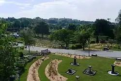 South of Bear Road, about 100 acres (40 ha) of the land formerly belonging to Scabe's Castle Farm is now covered by cemeteries. The Brighton Extra Mural Cemetery is the earliest: it was founded in 1850 by the Brighton Extra Mural Company, which was set up by four eminent Brightonians who were concerned about the lack of burial space in the growing town and the implications for public health. Nonconformist minister John Nelson Goulty, his son the architect Horatio Nelson Goulty, fellow architect Amon Henry Wilds and doctor and politician John Cordy Burrows bought an initial 13 acres (5.3 ha) of land and laid out a private cemetery for Anglican, Roman Catholic and Nonconformist burials.[18] The cemetery now covers 16.5 acres (6.7 ha) and is maintained by Brighton and Hove City Council.[19] In 1857, the Brighton Parochial Cemetery was founded on 20-acre (8.1 ha) of land adjoining the Extra Mural Cemetery; it is now called the Woodvale Cemetery and also has Sussex's first crematorium—the Woodvale Crematorium—which opened in 1930.[20][21][22] A third cemetery opened north of Bear Road and opposite the Extra Mural Cemetery in 1868: it covers 31.5 acres (12.7 ha) and is known as City Cemetery or Bear Road Cemetery.[23][24] In 1886, a fourth cemetery—again privately operated, a status which it still retains—opened on 30 acres (12 ha) of land southeast of the Woodvale Cemetery. It is called the Brighton and Preston Cemetery and also has a crematorium.[23][24] In 1919, the new Meadowview Jewish Cemetery (replacing a 19th-century facility on Ditchling Road in Round Hill) was laid out on land between the Bear Road Cemetery and the Meadowview estate. The 3.5-acre (1.4 ha) site was extended in 1978 when 1.5 acres (0.61 ha) was added to the northeast.[20][25]
