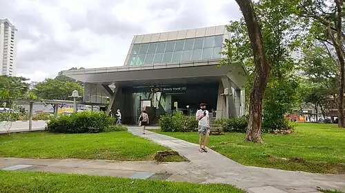 Beauty World MRT station is an underground Mass Rapid Transit (MRT) station on the Downtown Line (DTL) in Bukit Timah, Singapore. Located along Upper Bukit Timah Road, this station took its name from the historic Beauty World Market, a former amusement park and market that once stood in the vicinity. Beauty World station primarily serves the residential estates along Jalan Jurong Kechil and Toh Yi Drive, as well as Beauty World Centre, Beauty World Plaza, and Bukit Timah Shopping Centre. It is also within walking distances to Ngee Ann Polytechnic, Pei Hwa Presbyterian Primary School, Bukit Timah Market & Food Centre, Bukit Timah Community Club, Bukit Timah Tua Pek Kong Temple, and Bee Low See Temple.