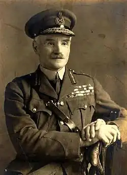 After the war he was promoted to the permanent rank of lieutenant-general, in January 1919,[33] and in October was appointed to succeed Lieutenant General Sir Thomas Snow as general officer commanding-in-chief (GOC-in-C) of Western Command.[34] He held this post until 1923 and then retired from the army in October 1926,[2][35] after being promoted to general in January.[36]