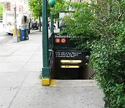 - ^ Cox, Jeremiah (March 24, 2007). "The green trim and "Bedford" tiling at Bedford Pk Blvd (D)". subway nut.com. Archived from the original on March 13, 2014. Retrieved October 17, 2018.