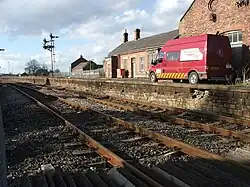 A planning application for the proposed new station at Bedlington was submitted to Northumberland County Council on 18 March 2021.[25] The submitted planning documents indicate that the new station will be constructed on the same site as the previous one,[26] with part of the extant original platform to be rebuilt for incorporation into a new[27][28] 100 m (110 yd)[26] down (northbound) platform and the surviving station buildings retained.[29] An entirely new 100 m (110 yd) up (southbound) platform will be added on the opposite (west) side of the through lines,[27][28] between Bedlington South Level Crossing and the junction with the line to Morpeth.[26] Passengers will be able to transfer between the two platforms using the existing level crossing.[26] The station will be served by two car parks: one with 36 spaces will be located immediately to the northeast of the up platform, while the other will have 31 spaces and will be located on the opposite (north) side of Barrington Road.[26]