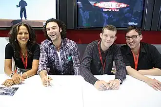 Two of the main cast were replaced in the series by Aidan Turner (Mitchell) and Lenora Crichlow (Annie). Russell Tovey was the only original main cast member. In the third series, Sinead Keenan became part of the main cast as Nina Pickering (a werewolf). In the fourth series, the ensemble was joined by Michael Socha as Tom McNair (a werewolf) and Damien Molony as Hal Yorke (a vampire).[2] The fifth series added Kate Bracken as Alex Millar (a ghost).[3] The first two series were set in Totterdown, Bristol, and the third series onwards relocated 25 miles (40 km), across the River Severn, to Barry, Wales.[4][5]