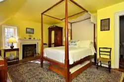 The top floor originally contained five bedrooms, with fireplaces in four of them. During the 1949 restoration, the fifth bedroom was converted into two bathrooms and closets, and its fireplace was removed. The small bedroom above the stairs was Parson Weems' study; it is said that he selected the remotest room as his own in order to secure sanctuary from his mother-in-law. A full-length attic spans the building.[38]