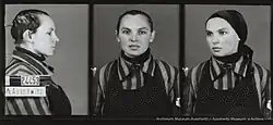Initially Hazan and Korzybrodska were sent to the fields to carry out forced labour. Soon Hazan started working as a nurse in the women's camp's hospital, where she was able to smuggle medicine to the Jewish patients, who were otherwise deprived of them. She helped Jewish resistance groups within the camp and provided extra food for Jewish women that had been smuggled into the Polish section of the camp.[2] She and Korzybrodska contracted Typhoid fever. Hazan eventually recovered but was unable to save her friend, who died in her arms on 13 April 1943. As Korzybrodska was thought to be a Christian, she was prayed for and an icon was placed with her body. Hazan persuaded the SS doctor to allow her to take her friend's body to the morgue herself, where she removed the icon and recited the Jewish prayer for the dead, the Kaddish.[3] Late in 1944, Hazan was moved to the new women's expansion camp in Auschwitz, where she was put in charge of the infirmary.[1]