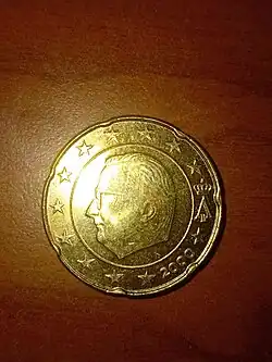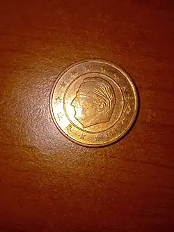 - ^ Premières pièces de monnaie à l'effigie du Roi sur le site officiel de la Monarchie belge Archived June 5, 2014, at the Wayback Machine