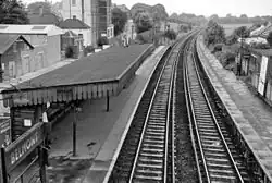 Belmont railway station serves the village of Belmont in the London Borough of Sutton in south London. The station is located on the Epsom Downs line and is in Travelcard Zone 5. It is 16 miles 1 chain (16.01 miles, 25.77 km) down the line from London Bridge measured via West Croydon.[3] It is the closest station to the Royal Marsden Hospital, which is just under half a mile away. On 19 January 2023, Sutton Council were granted £14,121,979 from the government to add a turnback siding to the south of the station to increase capacity to let services run at 4 tph instead of the current 2 tph service pattern.[4][5]