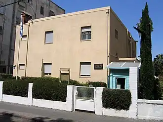 The house was built on Jewish National Fund (JNF) land,[2] when the first shechunat ha-po'alim (lit. workers neighborhood, i.e. a workers housing project) was established there in 1930–31, as Shechunat HaPo'alim Aleph, at the junction of Jewish National Fund Boulevard and Lassalle Street.[3] The Jewish National Fund (Hebrew: Keren Kayemet Le'Israel) Boulevard was renamed to Ben-Gurion Boulevard after the politician's death in 1973.[3]