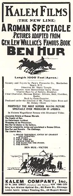- ^ a b c d e f g "KALEM FILMS...BEN HUR", advertisement, The Moving Picture World (New York, N.Y.), December 7, 1907, p. 649. Internet Archive, San Francisco. Retrieved July 2, 2020.