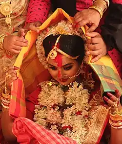 Bengali Hindu wedding (Bengali: বাঙালি হিন্দু বিবাহ) refers to the traditional Bengali cultural wedding,[1] typically conducted with Vedic (Hindu) rites and rituals native to the Bengal region of Indian subcontinent which has been practiced through centuries.[2][3][4][5]