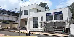 The elevated station stands on pillars above the centre of the Old Madras Road. Access is from a new footbridge connecting it with both sides of the road.[11]