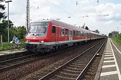Bensheim-Auerbach station is a station on the Main-Neckar Railway in the Bensheim district of Auerbach on the Mountain Road in the German state of Hesse. It has a heritage-listed entrance building. The station is classified by Deutsche Bahn (DB) as a category 5 station.[1] Only Regionalbahn services stop at the 3 platform tracks (only tracks 1 and 2 are used regularly).