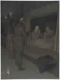 Bergþóra with her husband and grandsson in a late 19th-century painting by August Malmström