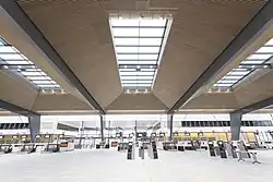 The main terminal covers an area of 21,000 square meters (230,000 sq ft), of which 14,200 square meters (153,000 sq ft) is used for passenger areas. The terminal has reached its capacity for simultaneous passengers, and especially security, check-in, arrival hall and baggage handling have limited space.[7]: 27