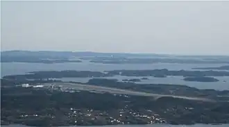 The first aircraft to operate in Bergen was a demonstration flight by Carl Gustav Cederström on 25 September 1911.[3]: 6  The first airport in the Bergen area was Flatøy Air Station, built by the Royal Norwegian Navy Air Service on the island of Flatøy. The water aerodrome was established in 1919; it remained in use until 1940.[3]: 32  Norway's first scheduled airline service was started by Det Norske Luftfartsrederi between Bergen, Haugesund and Stavanger in 1920, and operated out of Bergen Airport, Sandviken, a water aerodrome just north of the city center.[3]: 21  The aerodrome became the Bergen base for both Norwegian Air Lines and Vestlandske Luftfartsselskap.[3]: 20