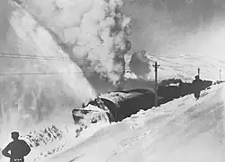 On 28 February 1944, a descending eastbound freight train loaded with oil and petrol lost its braking power and became a runaway train, finally ploughing into a westbound passenger train at Breifoss, just east of Geilo. The crash and subsequent fire killed 25 civilians and an unknown number of German soldiers. Poor lubrication oil combined with the cold weather is believed to have caused the accident.[28] [29][30]