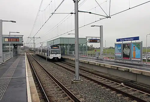 Berkel Westpolder is a metro station, as a part of the Rotterdam metro and the regional light rail system RandstadRail, located in Berkel en Rodenrijs, the Netherlands.