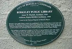 Berkeley Landmark Plaque: Main Branch Library, Downtown Berkeley