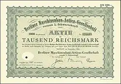 - ^ Aktie der neuen AG aus dem Jahr 1932, bei Effectenwelt, accessed on 13 March 2009
