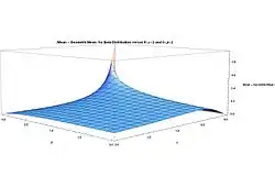 The expected value (mean) (μ) of a beta distribution random variable X with two parameters α and β is a function of only the ratio β/α of these parameters:[1]
