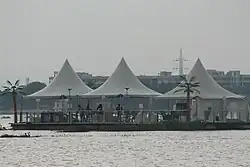 Bhavani Island situated in the midst of the Krishna River, at Vijayawada. It is located at the upstream of Prakasam Barrage and is considered one of the largest river islands in India, with an area of 133 acres (54 ha).[1] It has a robotic dinosaur park, garden maze, mirror maze, golf and badminton simulator, cycling, etc.