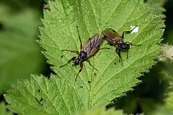 Bibionidae (March flies) is a family of flies (Diptera) containing approximately 650–700 species worldwide. Adults are nectar feeders and emerge in numbers in spring. Because of the likelihood of adult flies being found in copula, they have earned colloquial names such as "love bugs" or "honeymoon flies".[1]