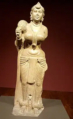 The first sculptures in Bihar date back to the Mauryan Empire. The Pillars of Ashoka, Masarh lion and Didarganj Yakshi are estimated to be at least 2000 years old, and were carved out of a single piece of stone.[24] Ancient statues are found throughout Bihar. Some of these sculptures were made from bronze, an advanced technique at that time. For example, the Sultanganj Buddha statue, estimated to be 1500 years old, is about seven feet tall and made of 500 kg of bronze, making it the largest statue of that period. Many statues, ranging from Hellenistic gods to various Gandharan lay devotees, are combined with what are thought to be early representations of the Buddha and Bodhisattvas.