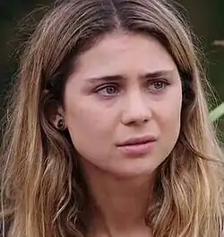 Billie's first major storyline occurred in June 2015 when she developed a crush on Nate Cooper (Kyle Pryor) and later accused him of assault.[11] The storyline began when Nate and his girlfriend Kat Chapman (Pia Miller) spotted Billie floating face down in the sea.[12] Nate ran into the surf to get Billie and carried her to the beach, where he administered mouth-to-mouth resuscitation to get her breathing again. As Billie came round, Nate assured her she would be okay.[12] As Billie looked at Nate "adoringly", Stephen Downie of TV Week noted that she was developing a crush on the doctor.[12] Billie's crush on Nate intensified and she began trying to break up his relationship with Kat.[13] Nate rejected Billie's advances and made it clear to her that he was not interested in her romantically, which she seemed to accept.[14] Billie later approached Nate when she found herself alone with him in the gym and thanked him for being a gentleman, unnerving Nate.[14] Billie's demeanour suddenly changed and she ran her nails down his cheek, scratching his face, and tore at her clothes, while screaming for him to stop.[14] Her screams attracted the attention of Chris Harrington (Johnny Ruffo), who rushed into the gym and comforted Billie, as she accused Nate of assaulting her.[14] Nate was questioned by Sergeant Mike Emerson (Cameron Stewart) at the police station, where he protested his innocence. However, Emerson then produced proof of a sexually explicit text sent from Nate's phone to Billie the previous week.[13]
