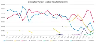 Results of Elections in Birmingham Yardley between 1918 and 2024