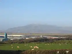 On the seaward side views extend from the Cumbrian coast, and from Criffel, 49 mi (79 km) to the north, a mountain on the Scottish coast near Dumfries, round to the Isle of Man, 45 mi (72 km) due west, then round to Snowdon which may be seen on days of exceptionally good visibility, 85 mi (137 km) to the south, to the coast of Lancashire. On the landward side, views include the Scafell Group and the Coniston Group of fells in the Lake District National Park, including four 3,000 ft (910 m) mountains: Skiddaw, Scafell, Scafell Pike and Helvellyn. To the east and south the Pennine Hills, the Forest of Bowland and Blackpool Tower are visible. Closer by, there are also good views over the Duddon Estuary, Millom and the wind farm just offshore.[1][3][4]