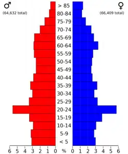 Age spread: 23.10% under the age of 18, 15.70% from 18 to 24, 25.20% from 25 to 44, 22.00% from 45 to 64, and 14.00% 65 or older. The median age was 34 years. For every 100 females, there were 92.30 males. For every 100 females age 18 and over, there were 88.80 males.