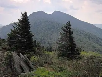 Mount Mitchell (foreground, left) and Clingmans Peak (background, right) viewed from Mount Craig