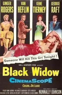 Black Widow is a 1954 American DeLuxe Color mystery film in CinemaScope, with elements of film noir, written, produced, and directed by Nunnally Johnson, based on the 1952 novel of the same name by Patrick Quentin. The film stars Ginger Rogers, Van Heflin, Gene Tierney, and George Raft.[3][4]