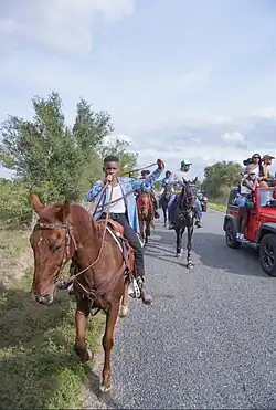 In Louisiana, Texas, and neighboring states, African-American trail rides celebrate and preserve the history of Black cowboys.[44] Every year since 1957, the Prairie View Trail Ride Association[45] at Prairie View A&M University have done a trail ride from Hempstead, Texas, to Houston to attend the Houston Livestock Show and Rodeo.[32]