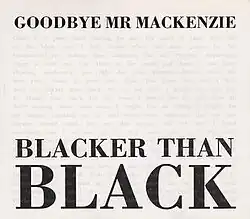 "Blacker Than Black" is a 1990 single by Scottish alternative rock group Goodbye Mr Mackenzie. "Blacker Than Black" was the band's second and final single release under the Parlophone label, and preceded its parent album Hammer and Tongs by almost a year. In 1991, after Goodbye Mr Mackenzie had signed to Radioactive Records, "Blacker Than Black" was remixed and released as an international single and featured on their debut international album release, also titled Goodbye Mr Mackenzie.