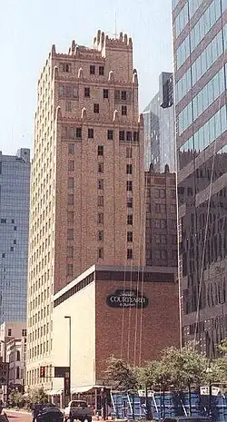 The Blackstone Hotel is the tallest hotel in downtown Fort Worth, Texas, at 268 ft (82 m) tall. Located on the corner of Fifth and Main Streets, it is noted for its Art Deco design with terracotta ornamentation and setbacks on the top floors. The hotel was constructed in 1929 and operated for over 50 years before it sat vacant for nearly 20 years. The Blackstone Hotel guest list is full of notable people including Presidents of the United States: Harry S. Truman, Dwight D. Eisenhower, John F. Kennedy, Lyndon B. Johnson, and Richard M. Nixon. The hotel was also host for a few movie stars such as Bob Hope, Clark Gable, and Elvis Presley. It was added to the National Register of Historic Places (Building #84001961) on February 2, 1984. The building was restored in the late 1990s and is still in use today as the Courtyard Fort Worth Downtown/Blackstone, although it is still known as the "Blackstone Hotel" to those who live in or have ties to Fort Worth.