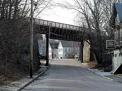 The Blackstone Manufacturing Company was founded in 1808 by investors from Providence, Rhode Island, and was one of several such companies that developed the Blackstone River industrially. Its early growth was instrumental in the growth of Blackstone Village in the 19th century. The company owned much of the land in the village, building it out as a company town, providing housing, a school and church, and other services for its workers. Its mill was located at the end of what is now called Old Mendon Street, and included one of the first mills built anywhere in the United States after the Slater Mill in Pawtucket. The complex now survives mainly as archaeological remnants, including filled-in raceways and other features. The company remained in independent operation until 1924, when it was acquired by the Lonsdale Company.[3]