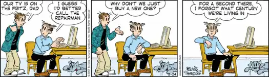 Strips in recent years have included references to recent developments in technology and communication, such as Facebook,[17] Twitter, email, and text messaging.