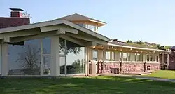 Land was added in 1955 and 1961, at which point the name was changed to Blue Mounds State Park. More lands were authorized in 1963 and 1965 to include the whole of Blue Mound and property to either side. The state bought Frederick Manfred's house in 1972 to turn into an interpretive center, although they let him live there for three more years. Because the house was at the southern end of the mound and the developed part of the park was at the north end, a connecting road was surveyed across the top. Local conservationists argued the state out of this plan several times in the 1970s, citing the impact to the environment atop the mound. In 1986 a road was paved from the house south to a county highway instead, so that visitors to the interpretive center must hike in from the north or drive around the edge of the park to the south entrance.[8]
