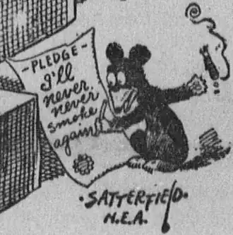 Robert William Satterfield (October 18, 1875 in Sharon, Pennsylvaniaโ February 17, 1958 in Glendale, California),[2] also known as "Sat",[3] was an American cartoonist known for his editorial cartoons; he also created the comic strips The Family Next Door,[3] Oh Thunder,[4] and The Bicker Family;[5] as well as the daily panels Sat's Bear and Days We'll Never Forget,[3] as well as Bizzy Bear.[6][7][8]